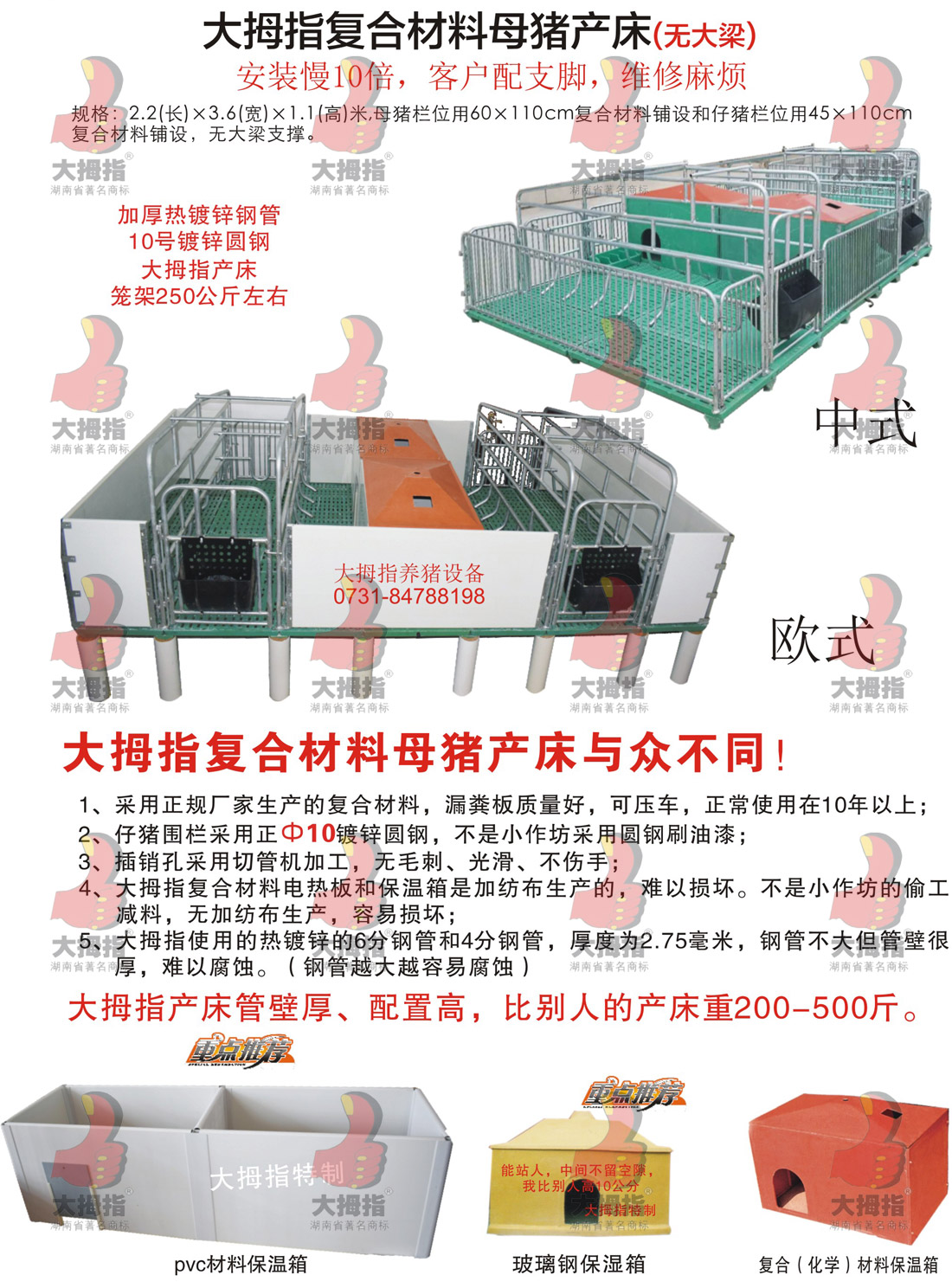 大拇指復合材料母豬產(chǎn)床(無(wú)大梁)