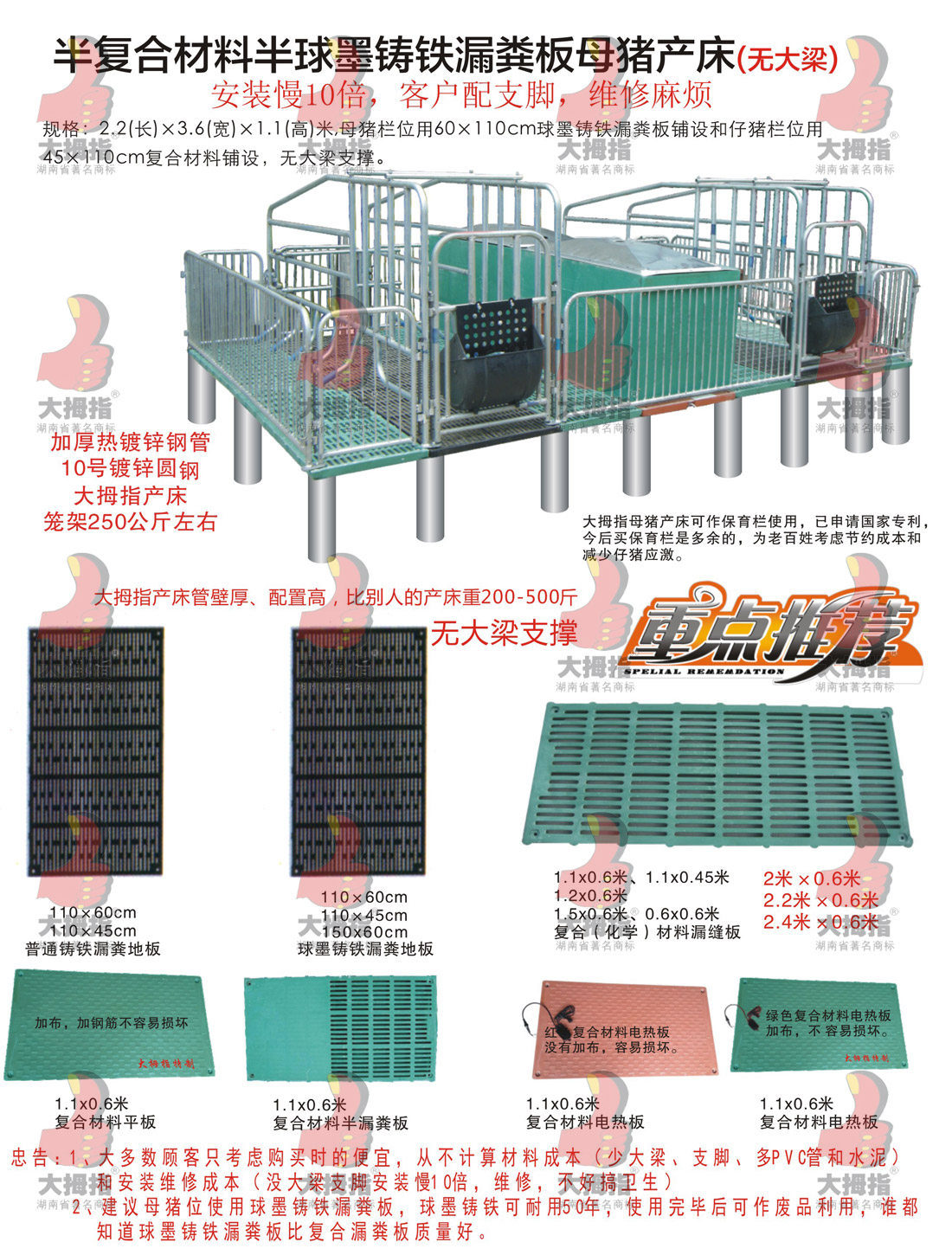 半復合材半球墨鑄鐵漏糞板母豬產(chǎn)床(無(wú)大梁)
